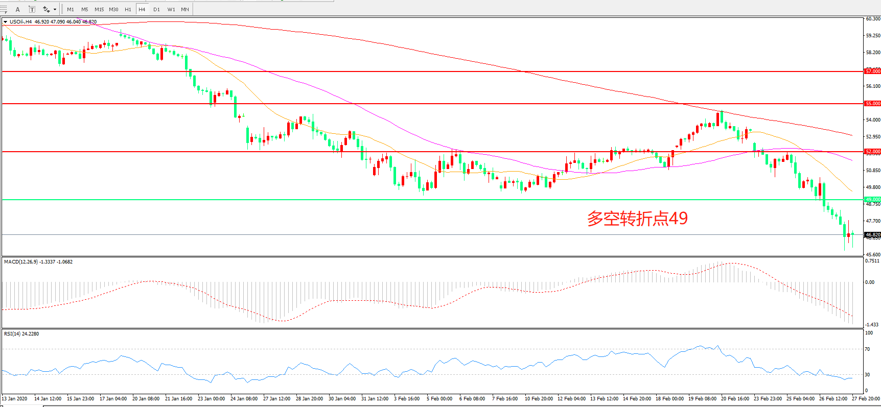 全球新冠疫情爆发近期对风险资产形成了明显冲击,美国WTI原油再度大跌3.4%,收报46.41美元/桶,创去年1月初以来最低收盘。目前最重要的还是对于疫情的发展评估,一旦新冠疫情演变成全球传染病,可能会导致全球经济全面放缓,并打击原油需求。