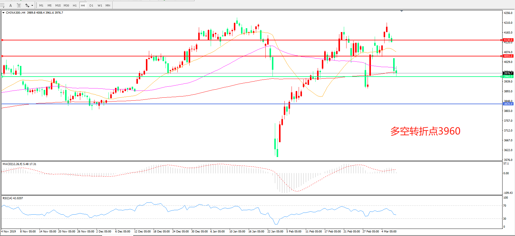 4小时图看,沪深300低开低走,整体表现低迷,均线系统走平,MACD红柱增加,RSI指标走平,日内延续上行概率较大。