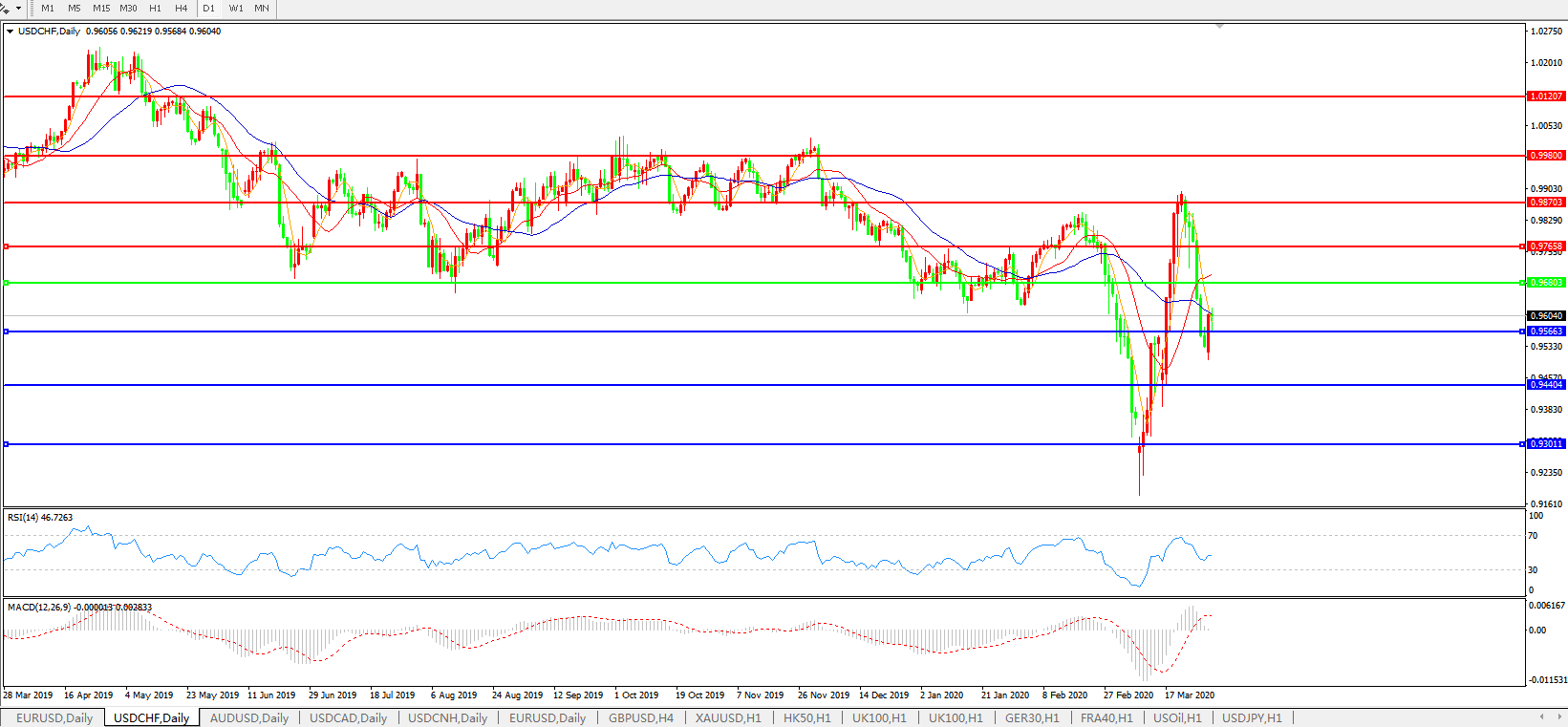 交易策略:0.9680下方看跌,目标0.9565、0.9440