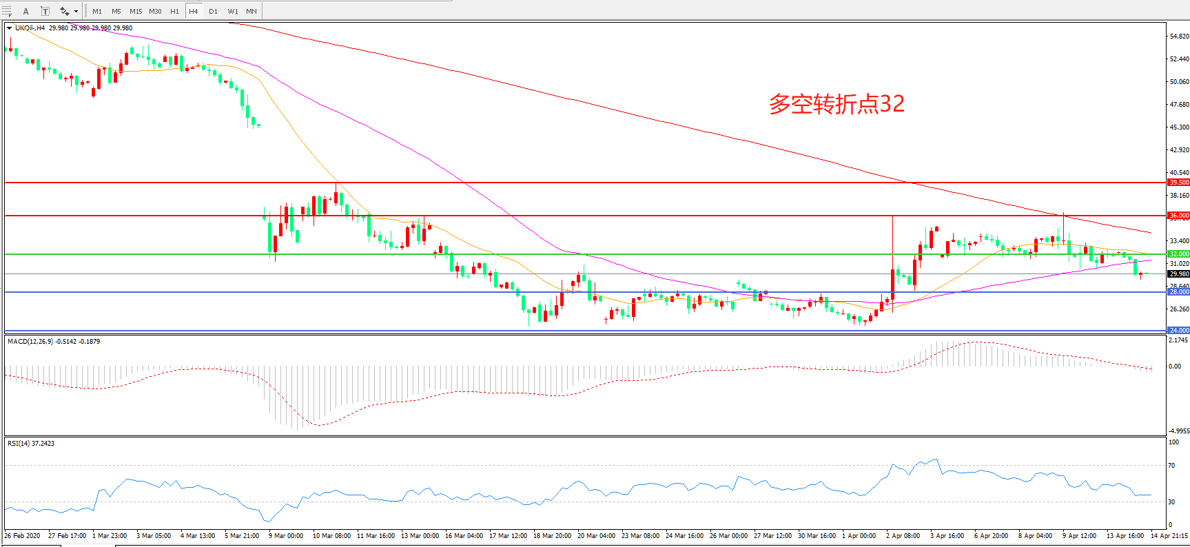 交易策略: 在32.00之下看跌,目标28.00    24.00