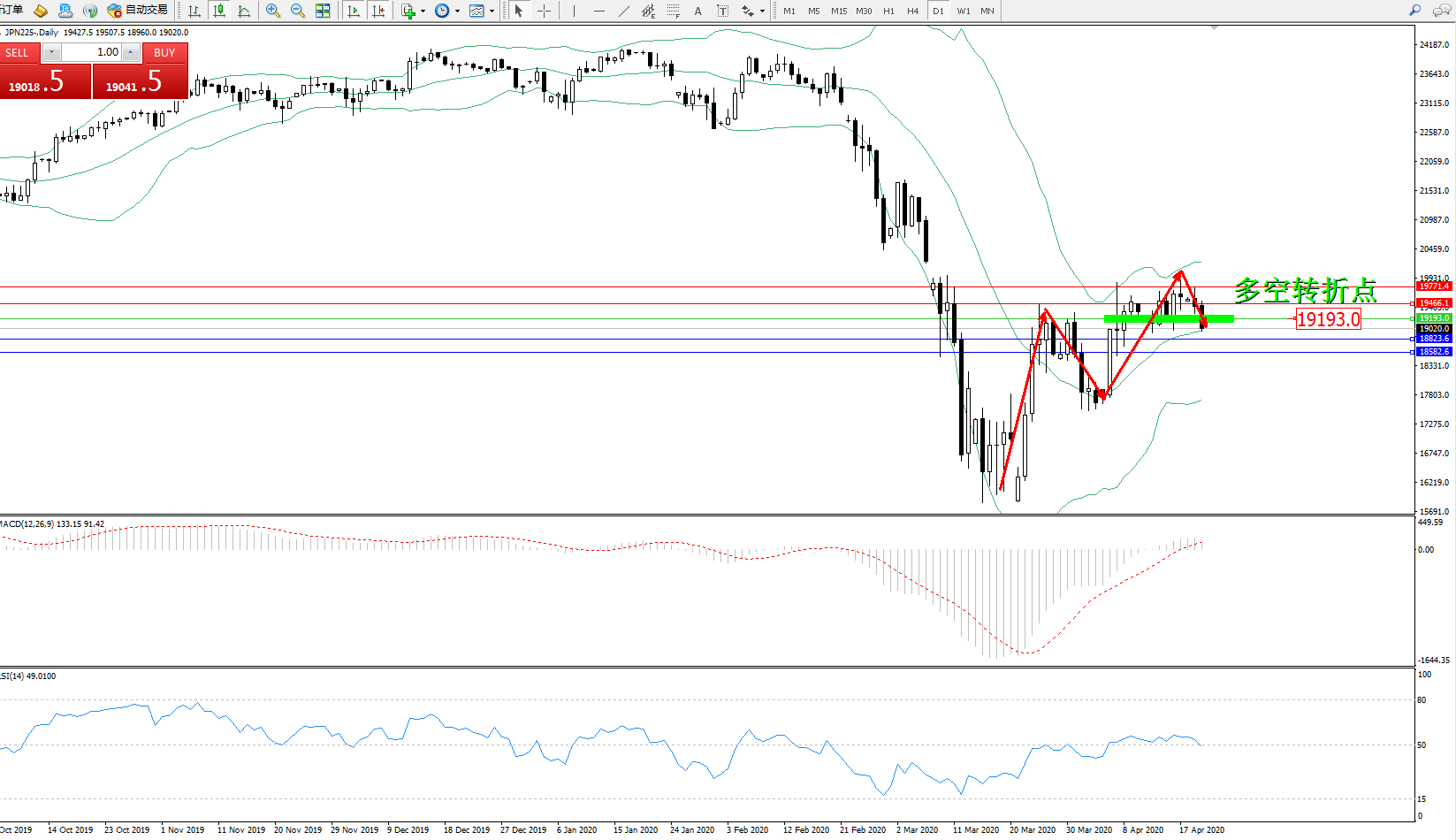 日经225指数4月21日(周二)收盘下跌385.62点,跌幅1.96%,报19283.50点。市场风险偏好情绪回落,同时叠加地缘风险的相关消息,亚洲股市纷纷大跌,目前解除经济封锁还需要一定时间,全球经济已经遭遇重创,且可能不完全可恢复的,日本作为全产业链经济体的代表,抵抗风险的能力更强。日本央行:日本金融体系整体保持稳定。日本企业维持稳健的营收及现金流。需要关注信贷成本上升的风险。日本政府和日本央行已经实施有力的政策措施。信贷担保和利息补贴至关重要。银行的证券投资组合可能恶化。资金紧张的状况可能会蔓延。可能出现外汇资金不稳定的风险。发行企业债和商业票据的情况仍然有利。自3月以来,部分银行对投资更加谨慎。