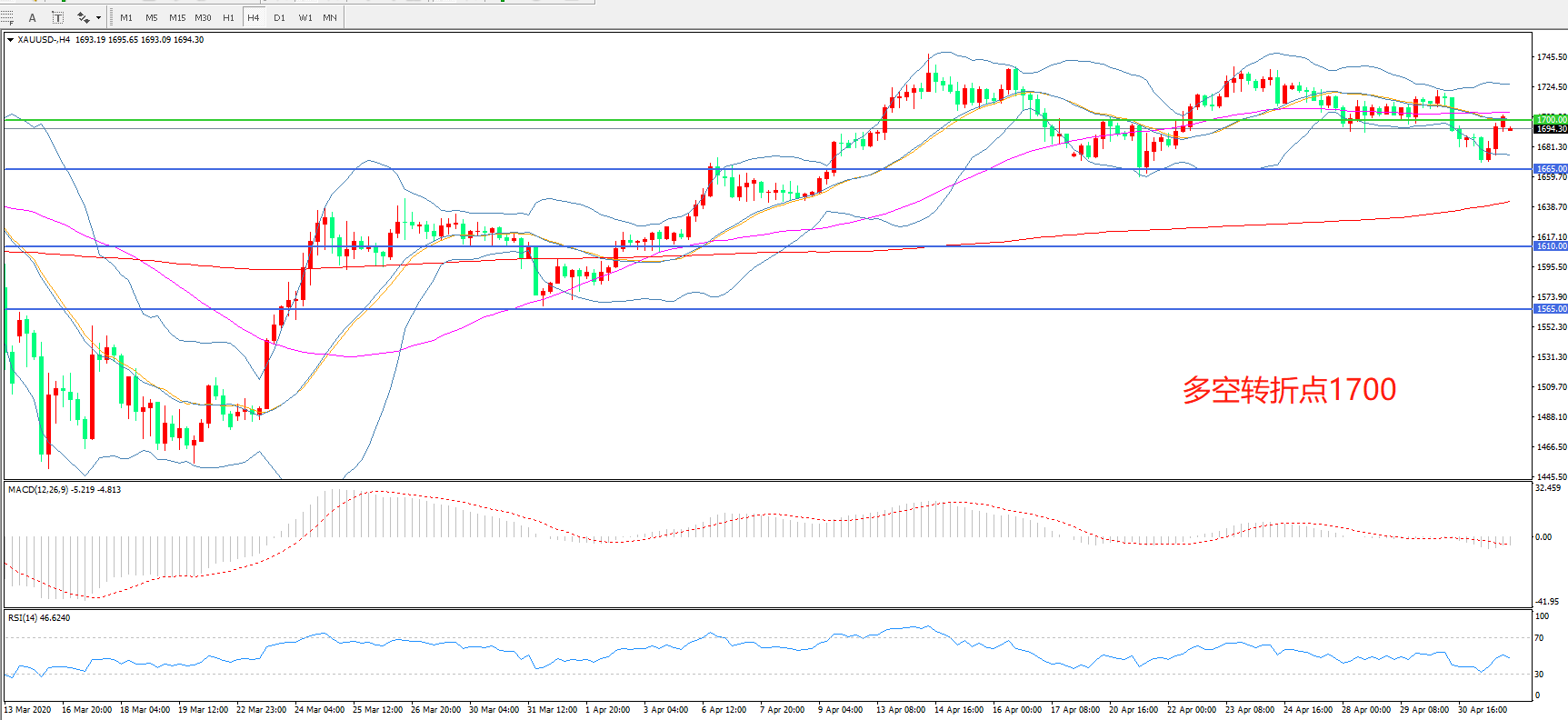 交易策略:在1700.00 之上看涨,目标1750.00   1785.00