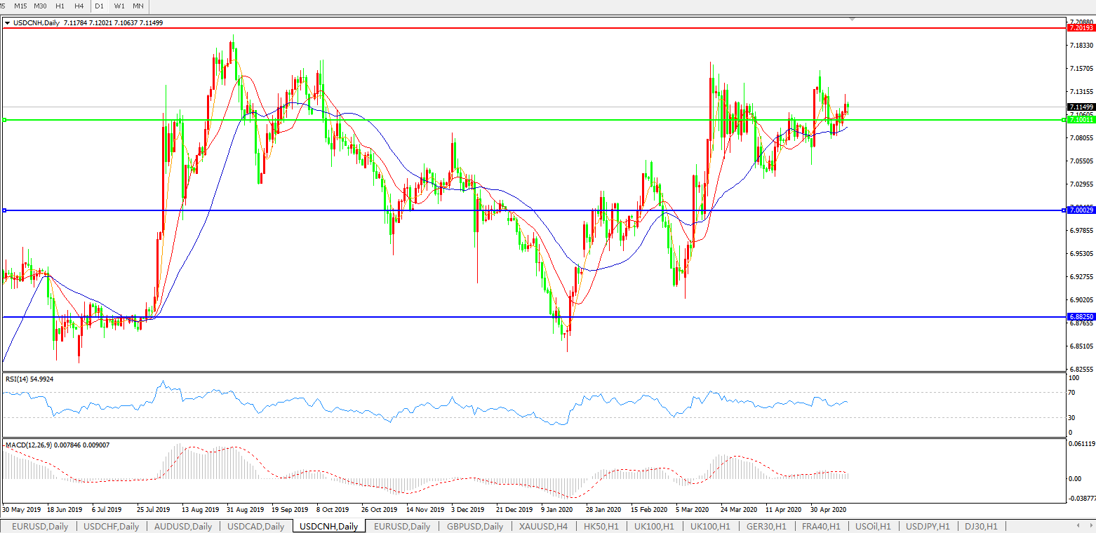 交易策略: 在7.1000之上,看涨,目标价位为7.2000,然后为7.3000。