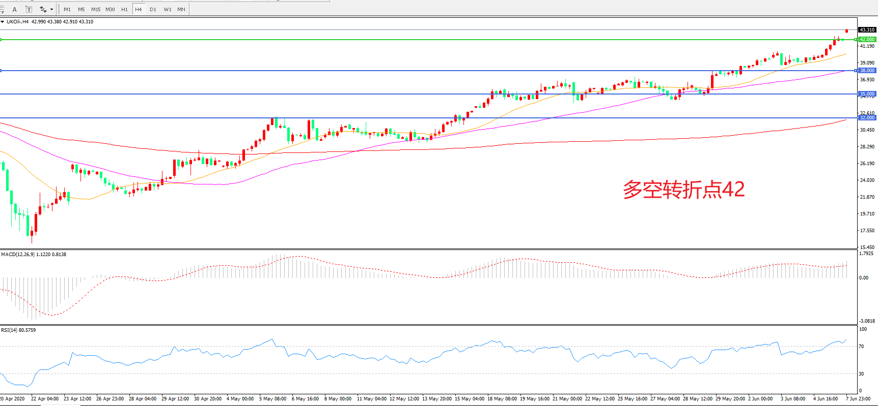 交易策略:  在42.00之上看涨,目标45.00      48.00