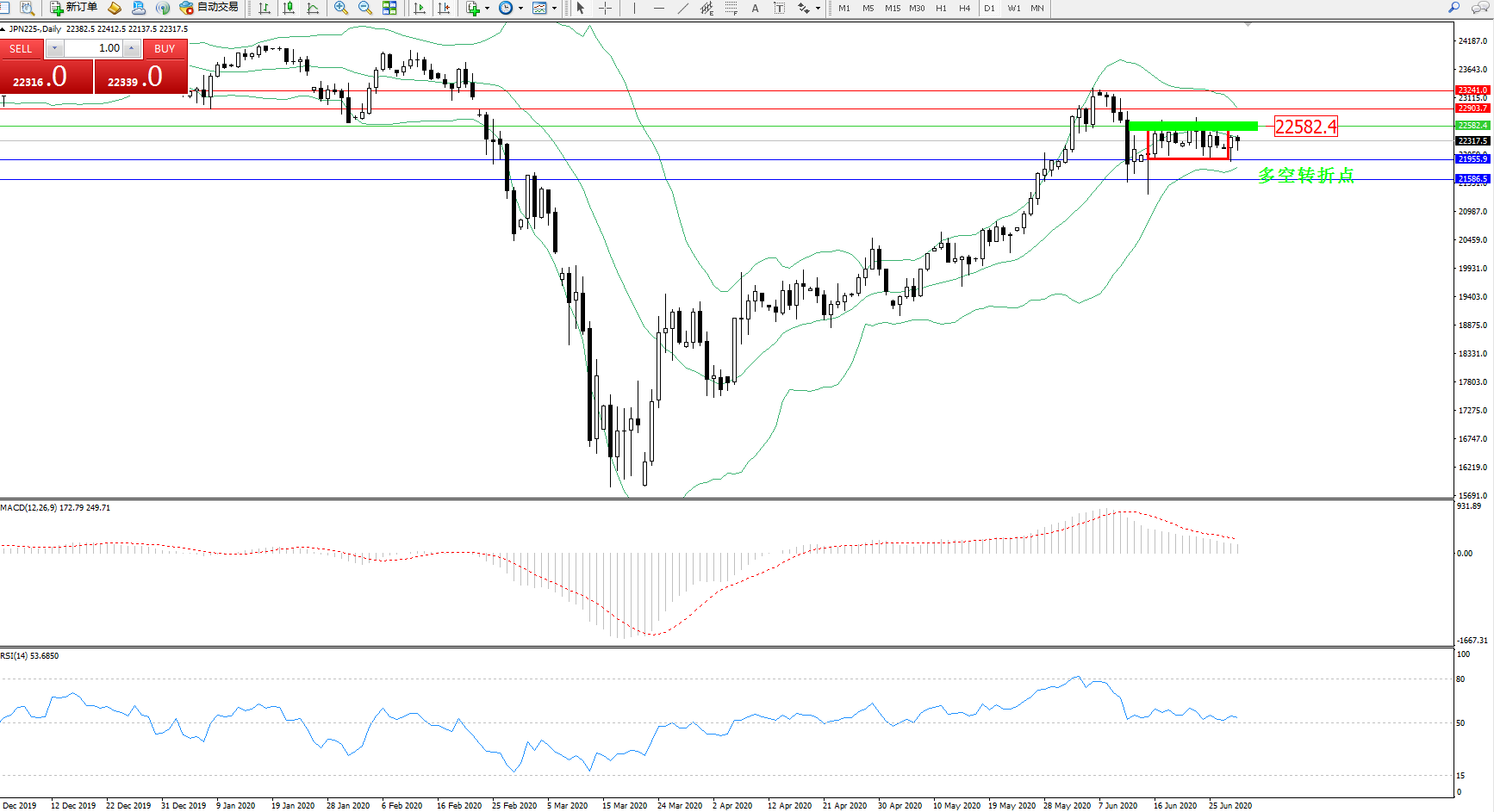 日经225指数630日(周二)收盘上涨279.46点,涨幅1.27%,报22274.50点。日内亚洲股市大幅反弹,隔夜恐慌指数大降,日本工业生产数据不佳,日本5月工业生产连续第四个月下滑,降至全球金融危机以来最低水准,凸显出新冠疫情对制造业活动的全面冲击,以及对整体企业及消费者前景的影响。日本正迎来二战之后最严重的衰退,因国内外防疫封锁措施导致供应链受到重创,企业持续歇业,同时压抑消费者支出。部分经济专家举出了日本陷入长期通缩的例子来证明,在民间储蓄率居高不下的状况下,政府不断扩大流动性注入的做法并不会激发起高通胀,但是分析人士相信,在欧美市场的文化背景下,储蓄率上升料仍只是暂时现象,蓄积的消费能量料仍有大概率会重新得到释放,这意味着提防通胀的这根弦,在此后仍需时刻绷紧。