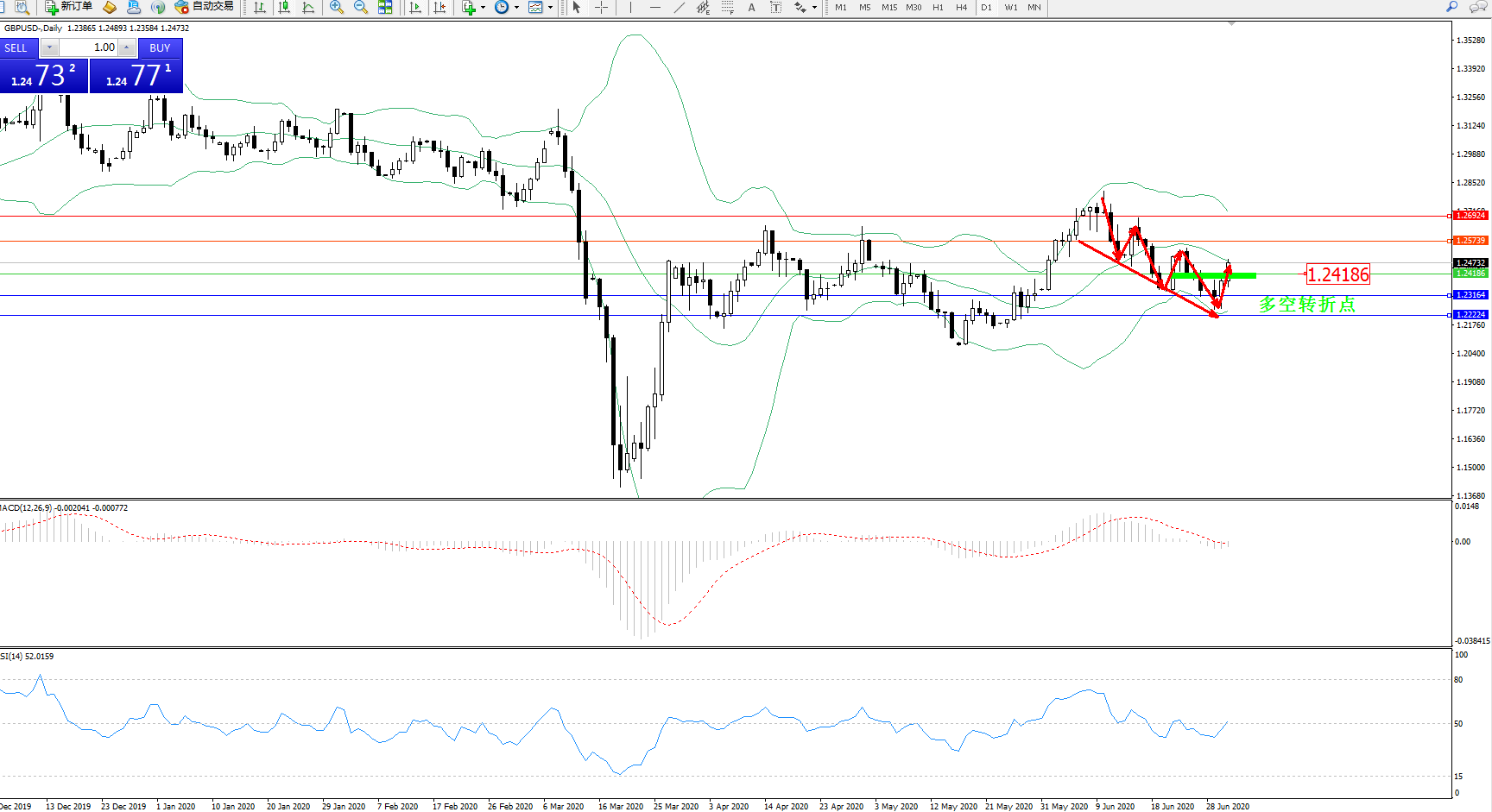 交易策略:1.24186上方看涨,目标1.257391.26924