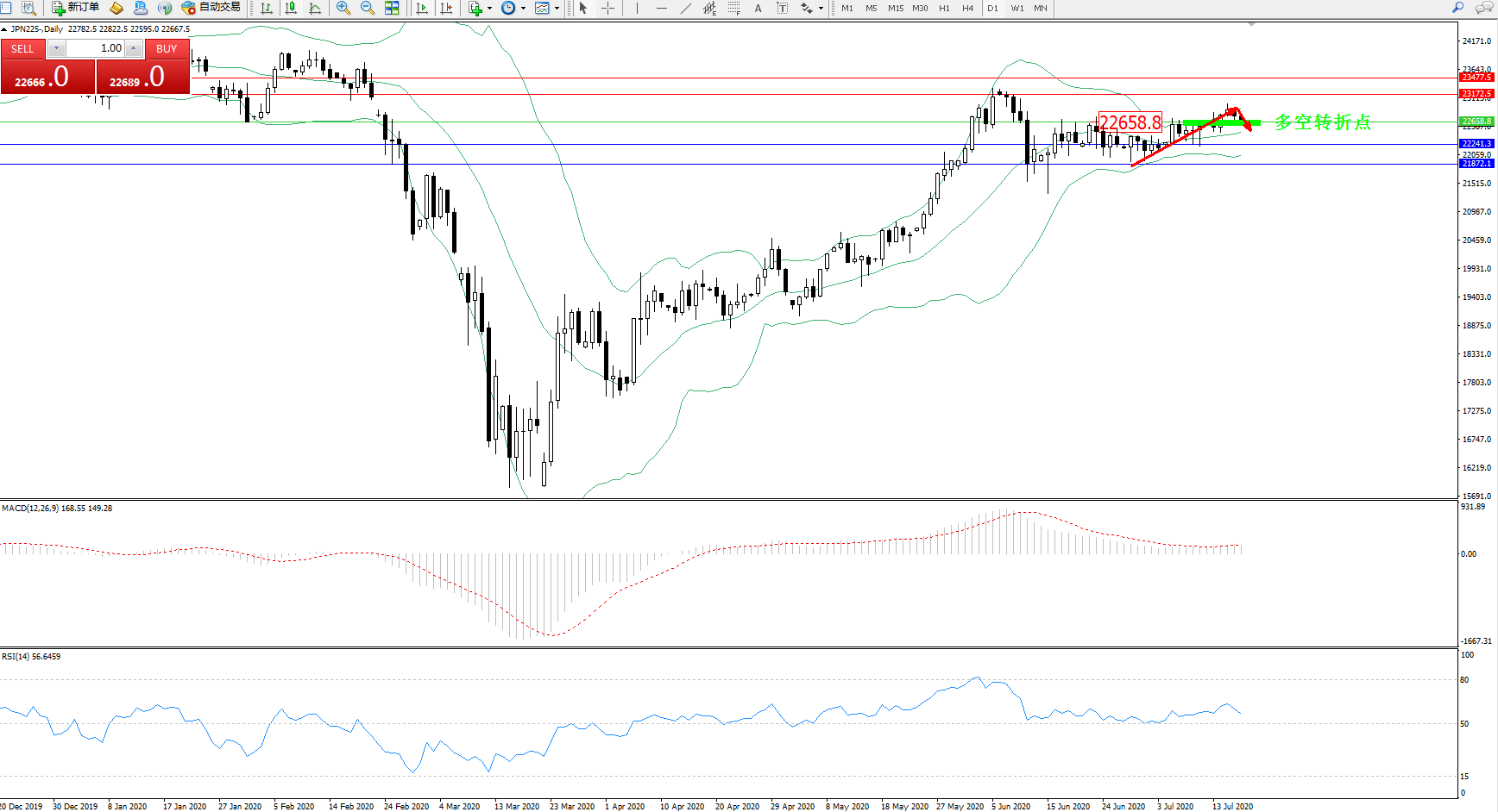 日经225指数7月17日(周五)收盘下跌89.86点,跌幅0.39%,报22680.50点。日本政府发言人:现在还没有到要重新发布紧急状态的情况。东京的医疗系统未承受压力。因新冠肺炎疫情,东京被排除在“Go To Travel”政策优惠之外。日本经济再生大臣西村康稔:日本恢复正常会致使新冠肺炎的传播。未来投资委员会将扩大规模,将于本月召开会议。对老年人感染新冠肺炎表示担忧。目前日本的医疗系统状况良好。经济指标较4-5月有所改善。日本在出口和生产方面仍然存在疲弱情况。如果不进行数字化,日本会落后的。把重点放在财政上是不能拯救生命和改善就业的。从长远来看,财务状况也必须保持稳健。