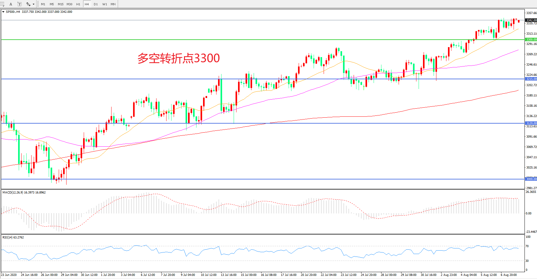 多空转折点:3300.00