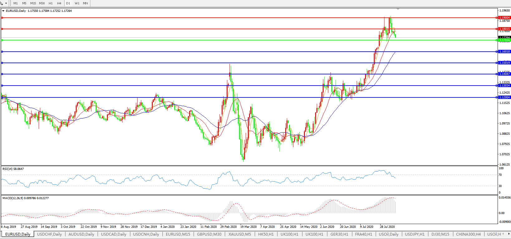 备选策略:1.1700下方看跌,目标1.1600、1.1500