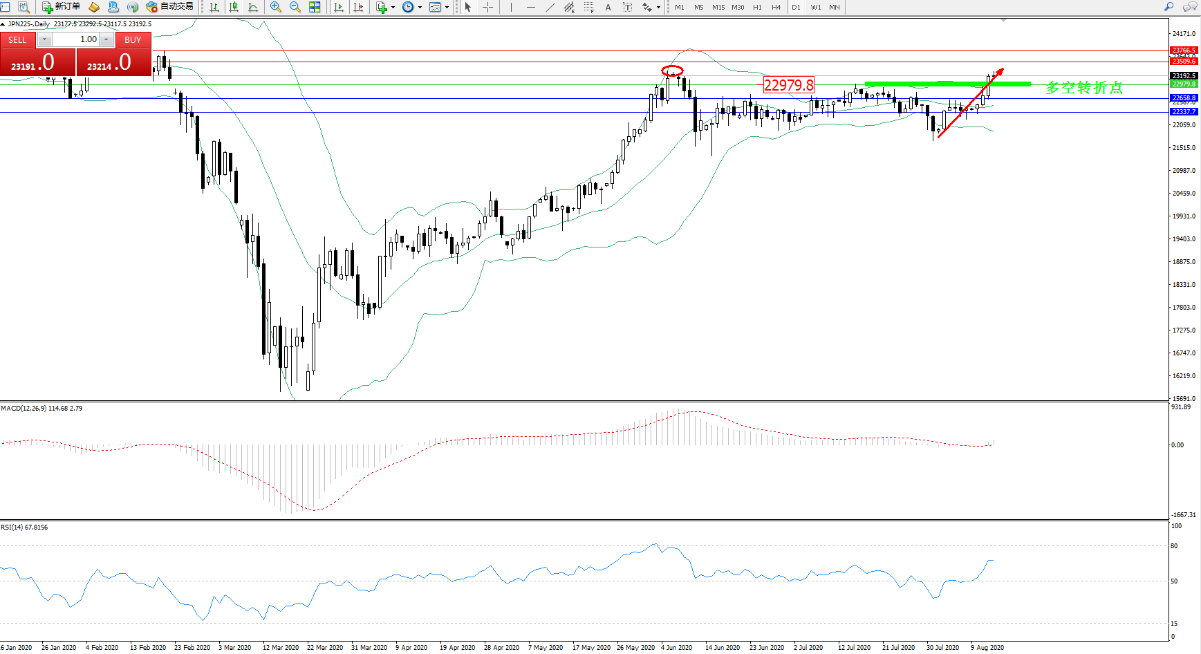 日经225指数8月13日(周四)收盘上涨419.04点,涨幅1.83%,报23263.00点。市场情绪发生戏剧性扭转,投资者对于疫苗上市前景的前景再生疑虑,这叠加上地缘领域的不确定性,令避险情绪重新升温,随着新冠肺炎疫情的蔓延,日本对外贸易受到的冲击进一步显现。最新数据显示,日本经常项目顺差继续大幅收缩,上半年同比降幅超过三成,6月经常项目顺差同比下降86.6%。2月,疫情暴发带来的进口减少导致日本经常项目顺差反而增长了21.2%,达到3.17万亿日元,为两年来新高,也是历史第三高经常项目顺差额。但随着疫情影响进一步显现,日本经常项目顺差自3月以来同比出现大幅下降,3月至6月分别下滑了32%、84.2%、27.9%和86.6%,顺差额分别为1.97万亿日元、2627亿日元、1.1768万亿日元和1675亿日元。