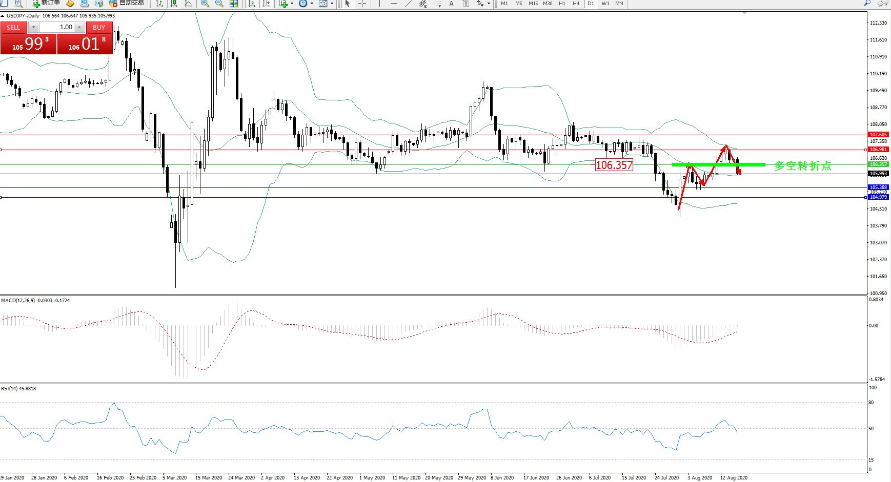 美元兑日元下跌0.56%至106.00,为7月27日以来最大跌幅;美元兑日元未来数周面临一定空间的下行压力;上周美债收益率走高与预期相符,且在利率的预期上转为中立;预期实际负利率走软的趋势将很快重启,通胀预期延续,而名义收益率则维持区间震荡;考虑到货币对走势与收益率之间紧密的关系,看跌美元兑日元的风险回报显得诱人,这可能进一步受到了外部对冲需求转变的扶助。同时市场还在担忧美国下一轮刺激协议的谈判进展,而美国大选也正在成为市场焦点,美国广播公司(ABC)民调显示,拜登和哈里斯的支持率为53%,而特朗普和彭斯的支持率为41%。