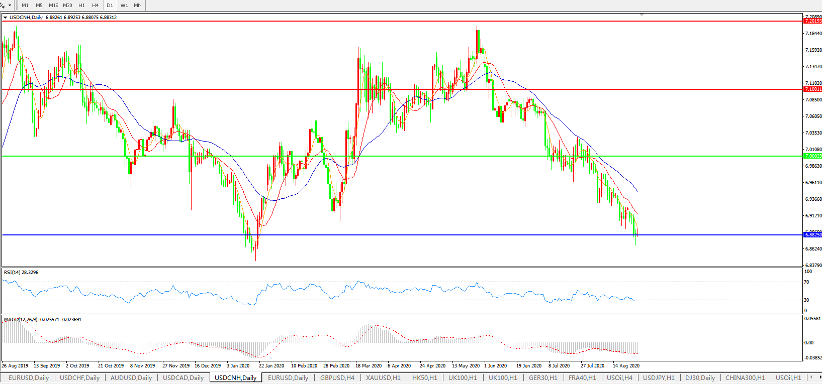 美元兑人民币USDCNH    日线图: