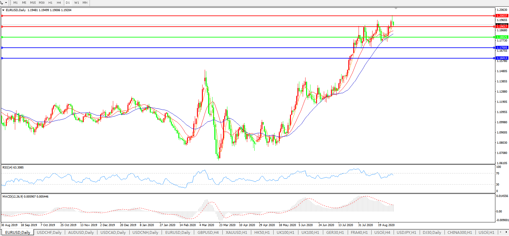 交易策略:1.1800上方看涨,目标1.1900、1.2000