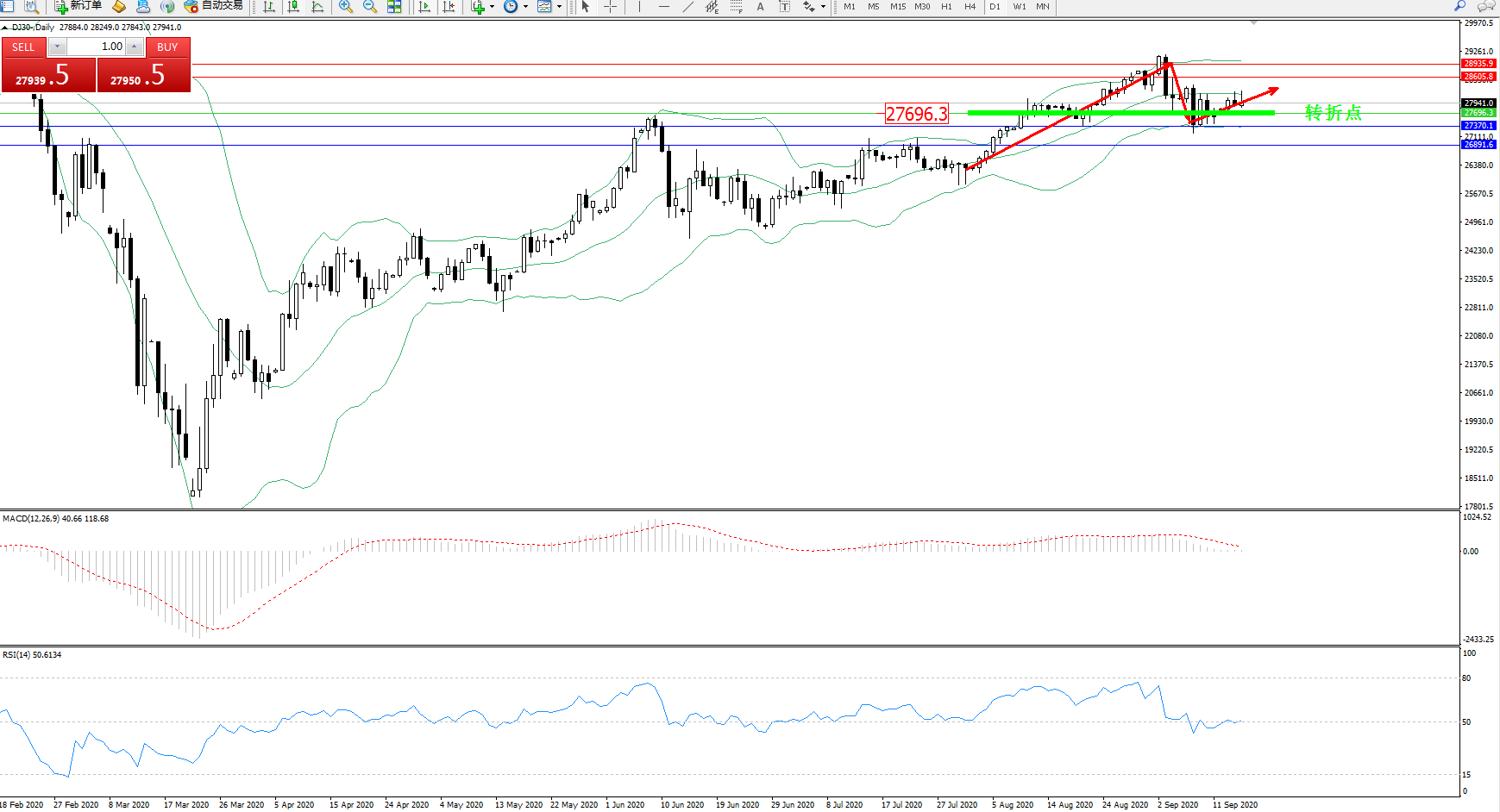 道琼斯指数9月16日(周三)收盘上涨36.80点,涨幅0.13%,报28032.38点。美股三大指数延续反弹势头触及9月4日以来新高,美联储于北京时间周四(9月17日)凌晨2点公布利率决议,维持0%-0.25%的利率不变。通胀“适度”并不意味着远超2%,只希望平均通胀达到2%。美联储准备在时机合适时调整资产购买,还远未弹尽粮绝,可以做的还很多。美国8月零售销售月率录得0.6%,为连续第三个月下降,每个数据都比预期的数值要低,这比较让人意外,但也不算是巨大冲击,毕竟,上个月增加的失业津贴到期,而按名义价格计算的销售额已经超过了疫情之前的高点。