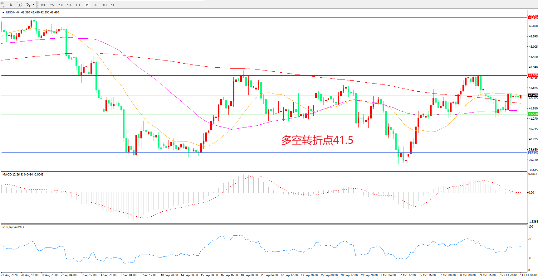 交易策略:  在41.50之上看涨,目标43.50      46.50
