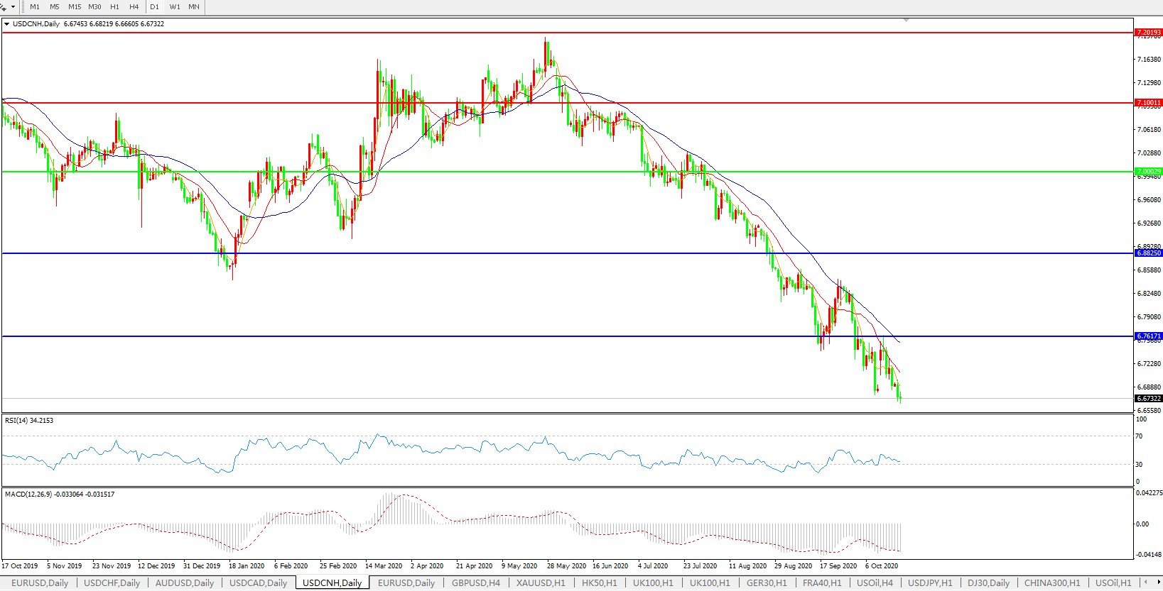 人民币兑美元即期周一收盘缩量略升,与中间价同创18个月新高;交易员称,逊于预期的中国第三季度国内生产总值(GDP)数据公布后,部分头寸选择逢低购汇,人民币高位回落,之后汇价多在6.70附近窄幅波动,但临近尾盘小幅走升;他们并指出,当前市场成交较为清淡,流动性亦偏弱,随着美国大选的临近,风险因素料增多; 中国人民银行行长易纲在线上30国集团(G30)国际银行研讨会上表示,因中国控制住新冠疫情,经济仍有韧性、有潜力下,预期今年经济增长约2%,表明对内需驱动的复苏前景有信心;中国财政和货币政策将侧重于帮助中小型企业渡过新冠危机带来的痛苦,同时确保内需在促进增长方面发挥更大作用; 全球汇市方面,对贸易敏感的亚洲货币周一持坚,因数据显示中国经济自疫情中的反弹在第三季加快,人民币位于一年半高点附近