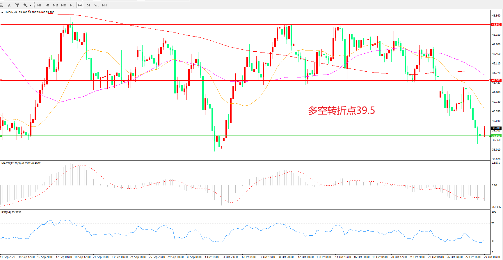 交易策略:  在41.50之下看跌,目标39.50      37.00