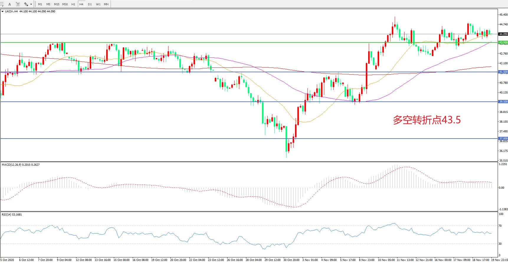 多空转折点:43.50