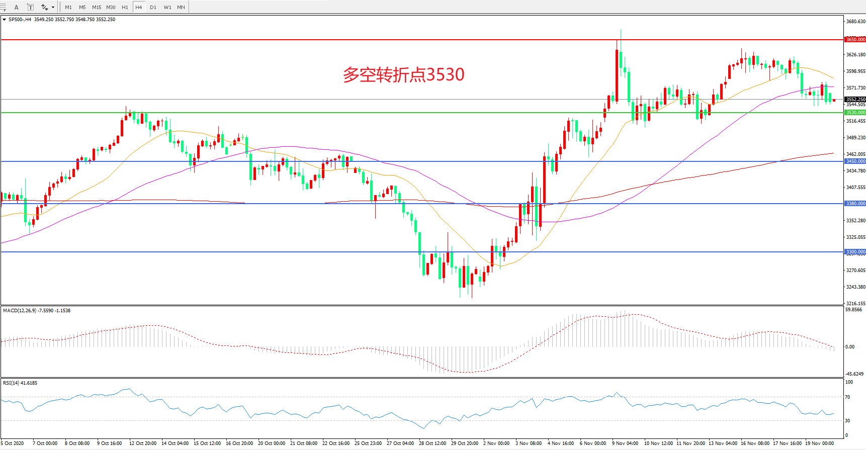周四(11月19日),美股三大指数集体低开,随后标普500在科技股带领下收复失地,目前市场的注意力重新转向新冠确诊病例数上升以及新的疫情防控措施之中,市场情绪在忧虑与乐观之间不断摇摆,标普500小幅回落,收报3553.75点。