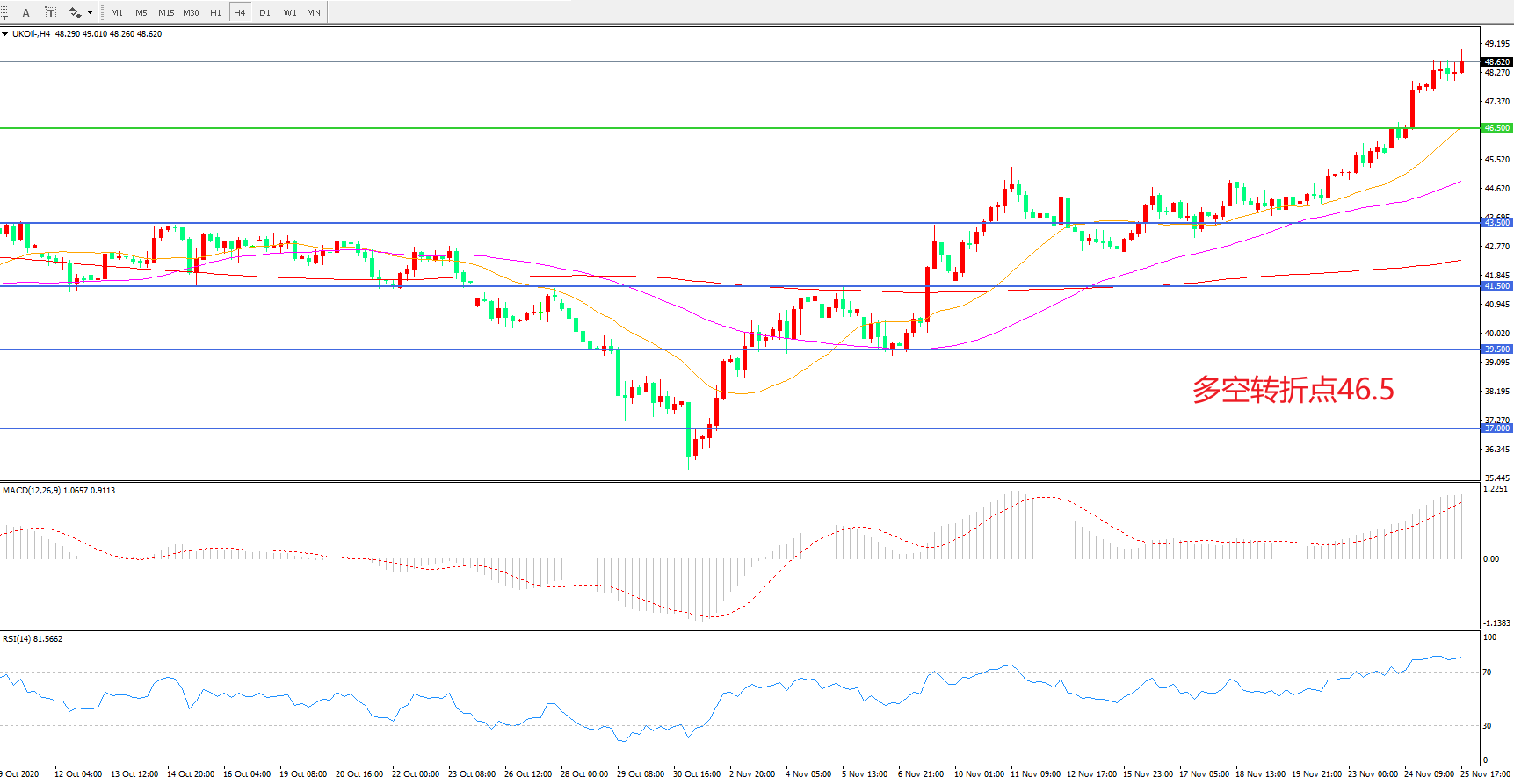 周三(11月25日),OPEC表态将会延后三个月增产,给了多头极大的信心,布伦特原油继续高歌猛进,收报48.62美元/桶。目前以沙特和俄罗斯为首的OPEC+仍倾向于将现有减产协议维持到明年一季度,与此同时,OPEC开始担心高油价下的市场份额被美国页岩油抢夺,新的举措可能会在下周举行的OPEC+部长级会议时揭晓。