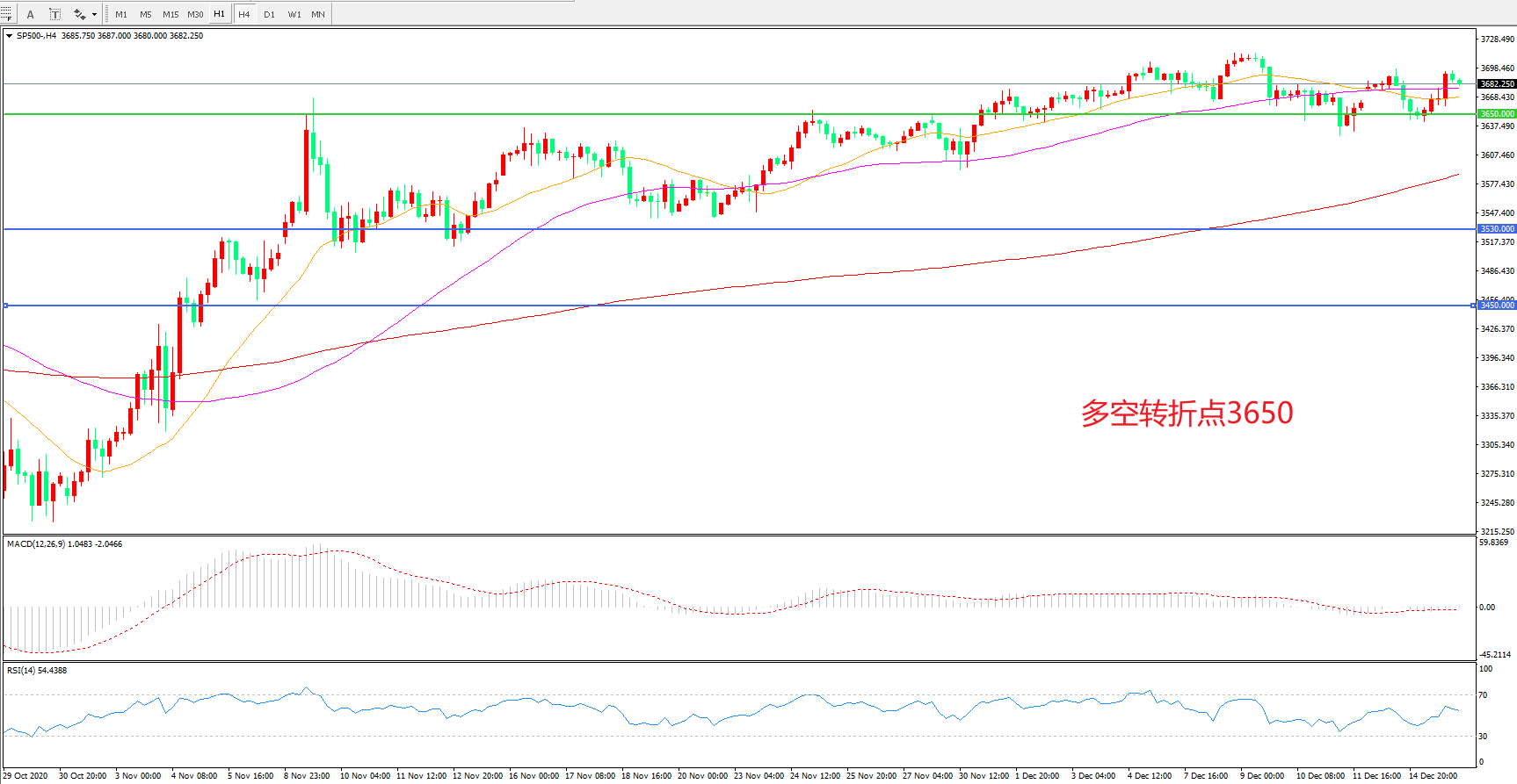 多空转折点:3650.00