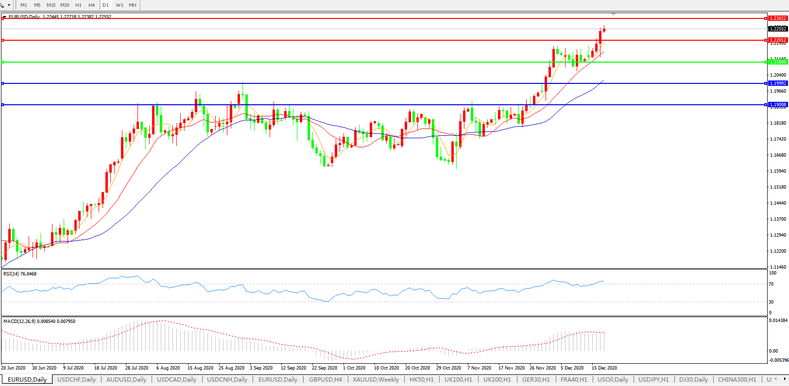 技术面简析:日图均线呈有序多头排列,汇价继续上攻,MACD运行于0轴上方且量能0轴上再度放量 ,RSI有缓步走升迹象,预计短期汇价大概率将进一步上行。