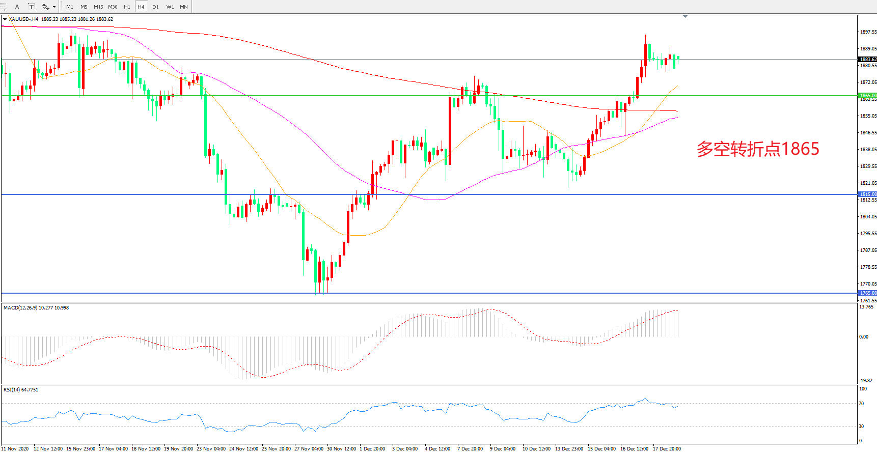 交易策略:在1865.00之上看涨,目标1910.00   1950.00