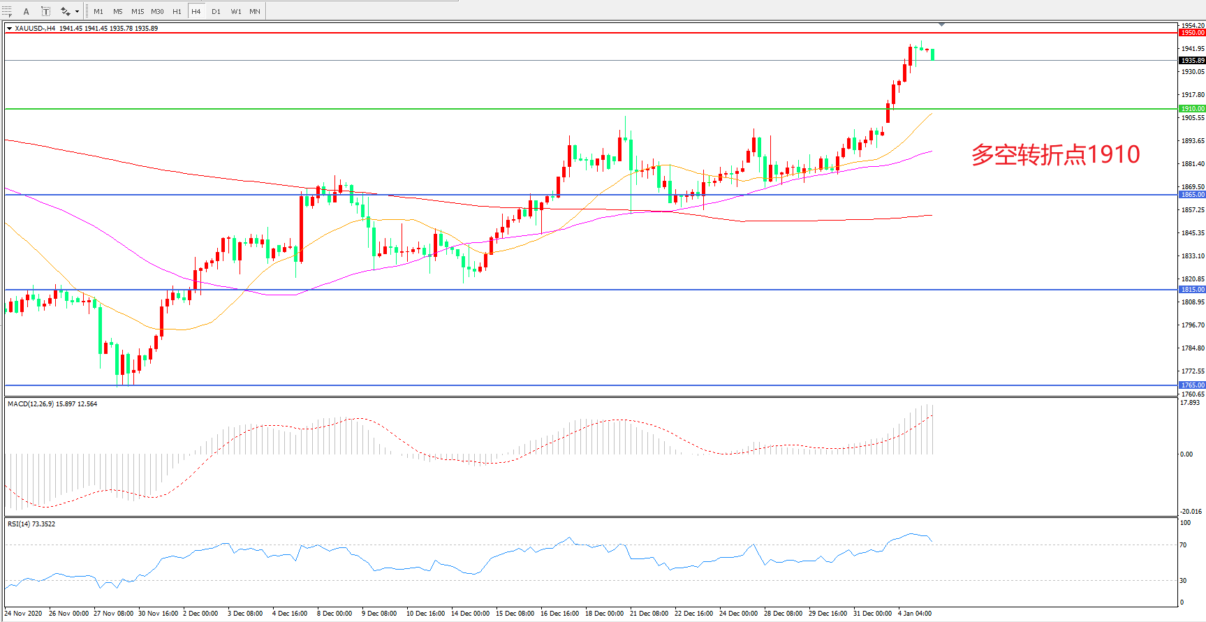 交易策略:在1910.00之上看涨,目标1950.00   1980.00