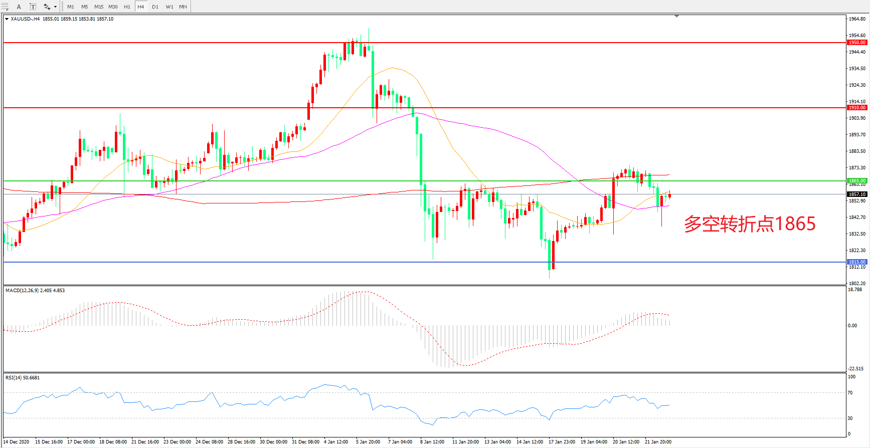 交易策略:在1865.00之下看跌,目标1815.00 1765.00