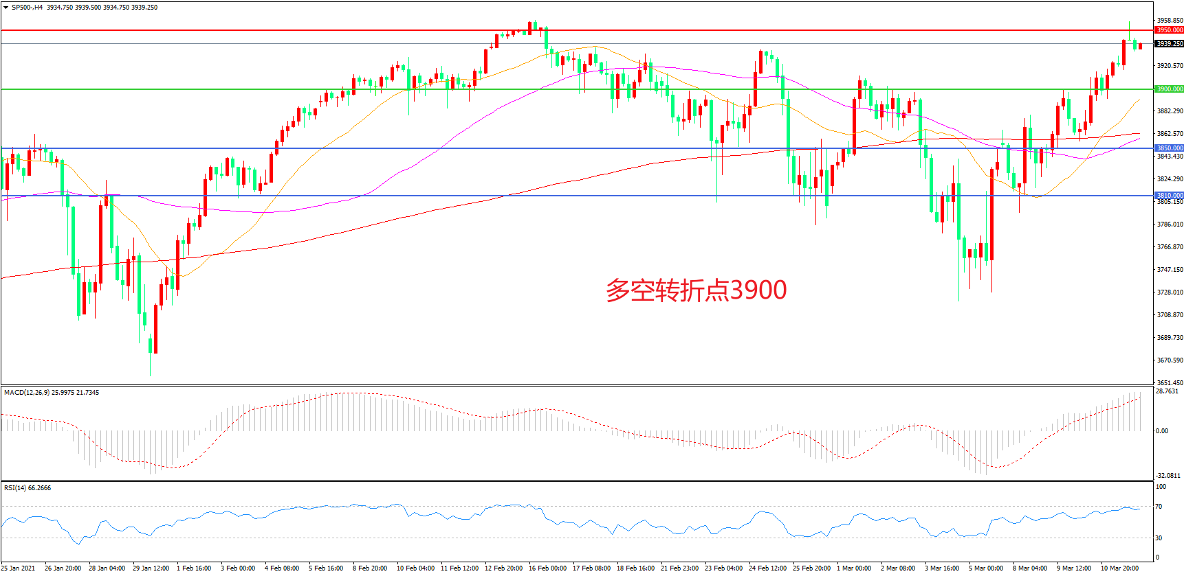 多空转折点:3900.00