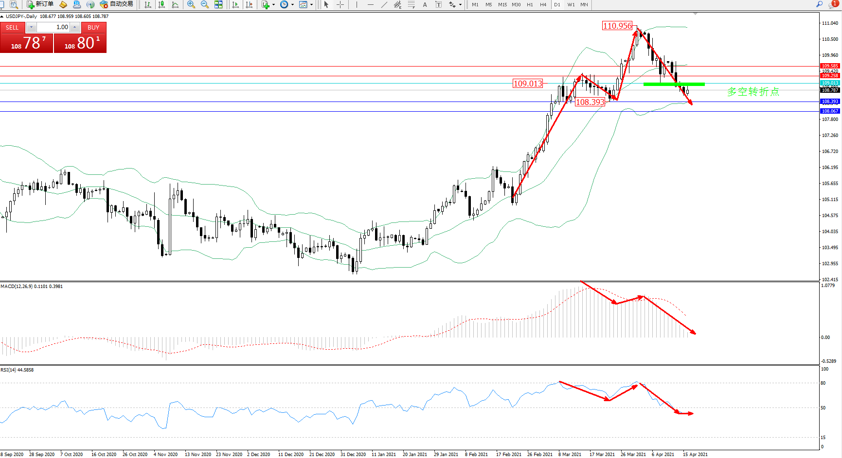 多空转折点:109.013