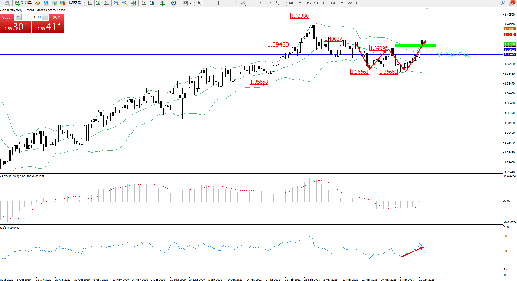 备选策略:1.39460上方看涨,目标1.40433、1.41011