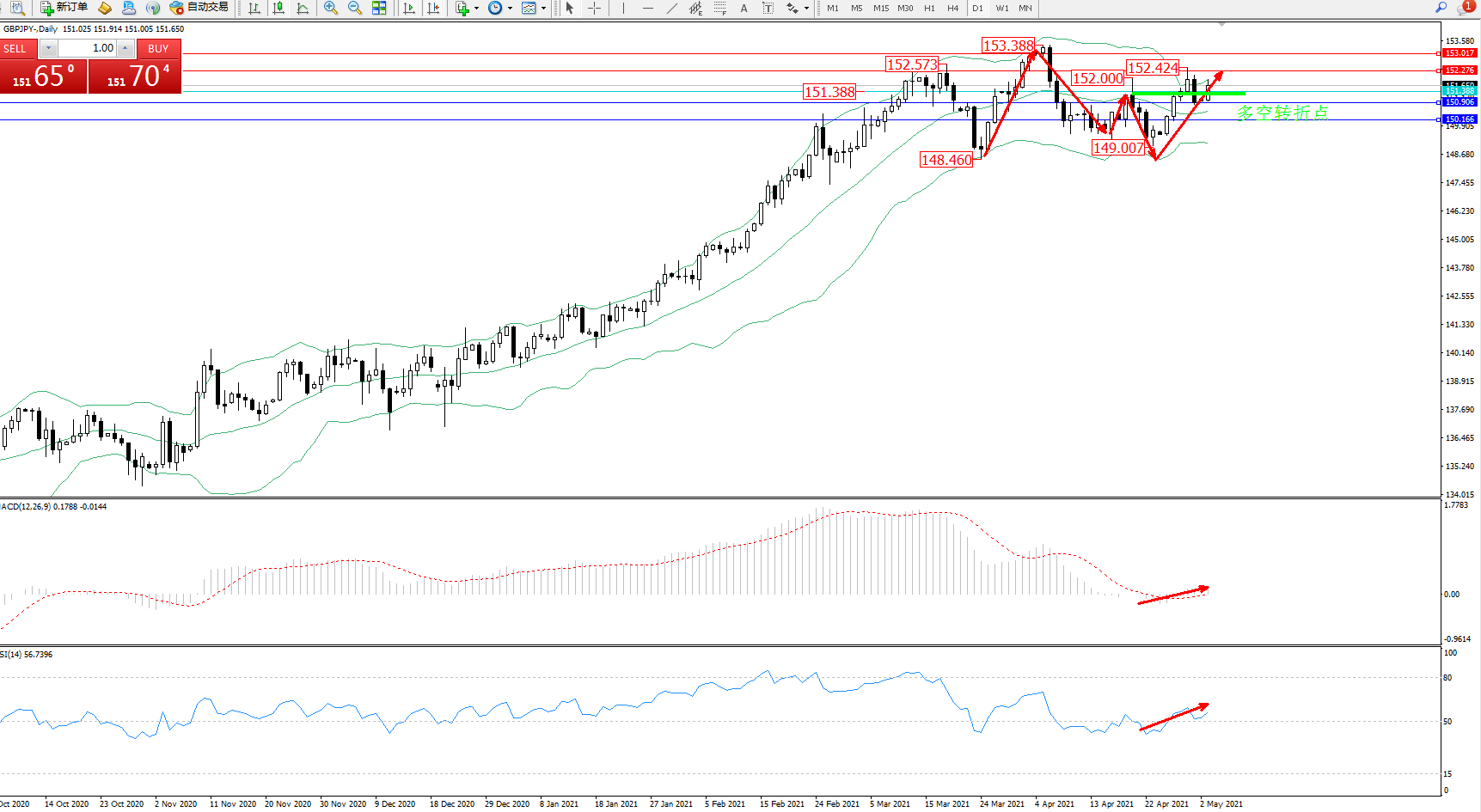 技术点评:长时间维持在布林指标通道宽幅震荡整理持续平移中,多空动力均处于焦灼状态,多次来回试探上下轨区间节点,低位多头再度上移至布林带指标上轨附近破位后抵达152.424位置遇阻维持在中上轨区间震荡中,布林带指标呈收口走势后开始有持续平移迹象,MACD指标处于0轴线上方弱势徘徊中,RSI指标处于50均衡线上方震荡持续中;