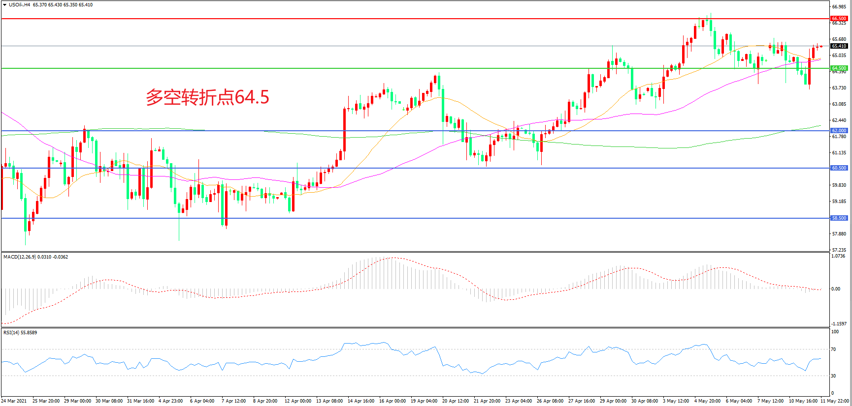 周二(5月11日),原油价格连续三天从日内低点快速拉回,反映出了市场极强的韧性,美国WTI原油探底回升,长阳连续拉升后收报65.38美元/桶。在昨日公布的OPEC月报中,OPEC坚持其2021年全球石油需求将强劲复苏的预测,因为中国和美国的增长应对了印度的疫情危机,这一前景支持了该组织逐步缓解减产的计划,也推动了市场情绪的回升。