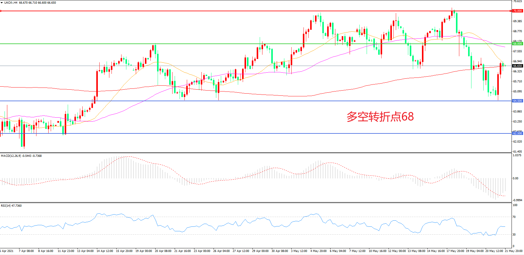 交易策略:在68.00之下看跌,目标64.50         62.50