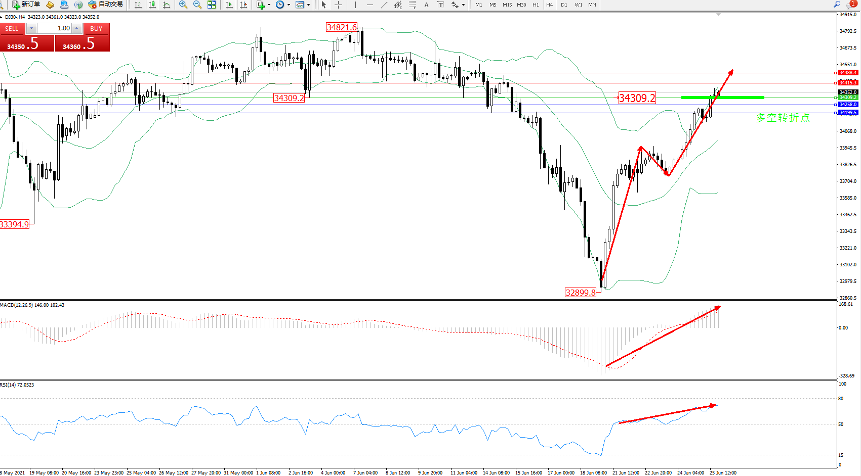 道琼斯指数6月25日(周五)收盘上涨238.01点,涨幅0.70%,报34434.83点;美国股市周五收盘连续第二个交易日走高。在刚刚结束的一周,市场波动性大幅下降,与经济复苏联系密切的公司股票受到投资者追捧。美联储青睐的通胀指标--个人消费支出价格指数5月涨幅小于前一个月;密歇根大学消费者调查显示,长期通胀预期较前一个月有所下降。现在断言通货再膨胀交易已经全面恢复可能还为时过早,但至少对美联储转向鹰派的焦虑情绪有所缓和。就目前而言,有一种看法是,尽管通胀压力不断增加,但美联储官员们不会急于提高利率。