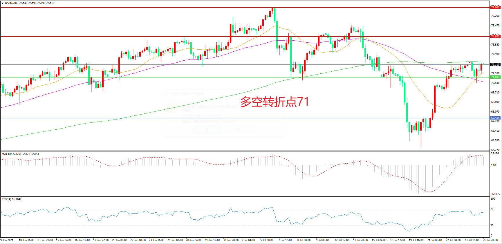交易策略:在71.00之上看涨,目标74.50       77.00