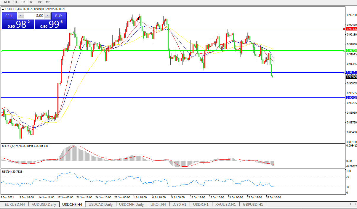 交易策略:0.9170下方看跌,目标0.9110、0.9040