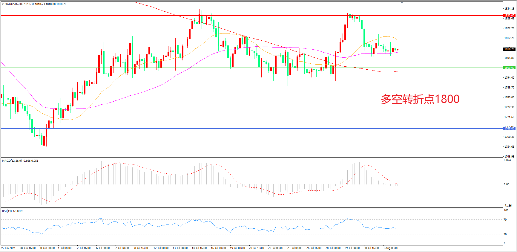 交易策略: 在1800.00之上看涨,目标1830.00 1860.00