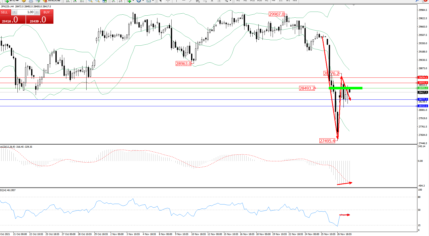 日经225指数11月29日(周一)收盘下跌500.12点,跌幅1.74%,报28251.50点。日本首相岸田文雄:日本将禁止所有外国游客入境。禁止措施将于11月30日生效。上述为紧急措施,还需等待更多信息。从国外入境的日本人必须接受检疫隔离。据日本电视网报道,日本厚生劳动省11月29日发布公告称,28日一名来自纳米比亚的入境人员新冠病毒检测结果呈阳性,目前正在确认其是否感染新冠变异病毒奥密克戎毒株。
