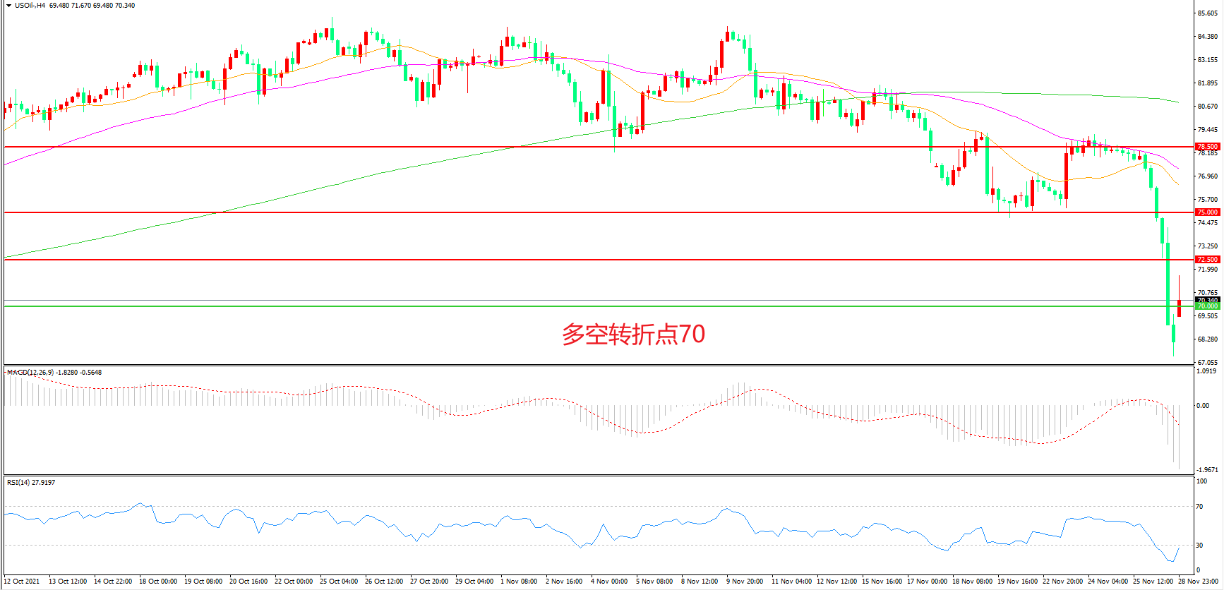 多空转折点:70.00