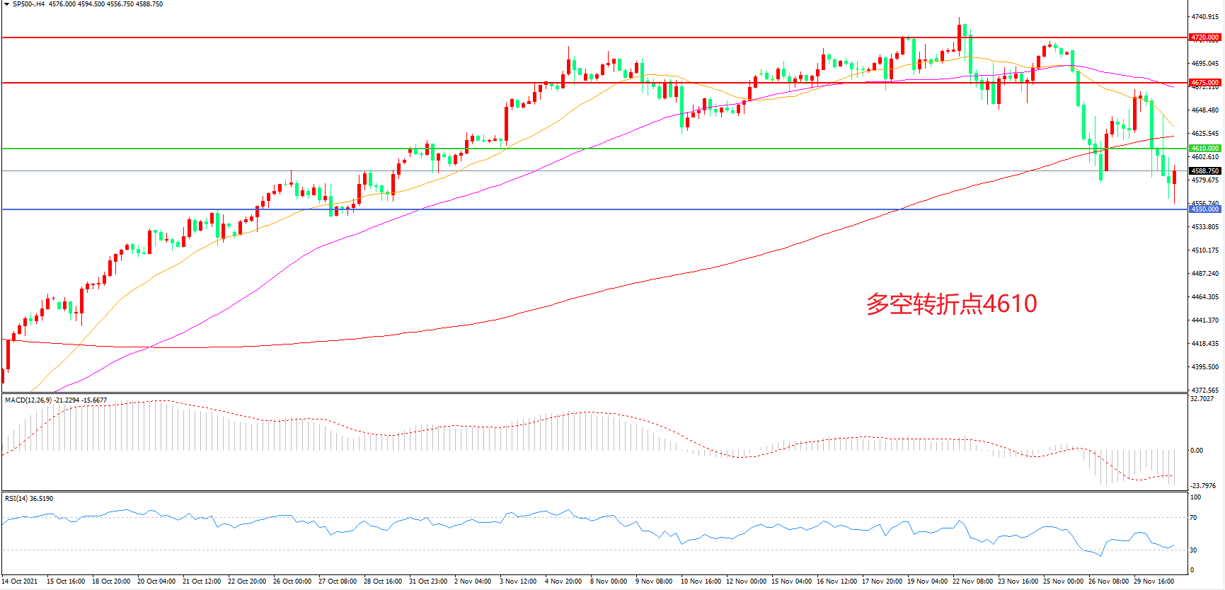 周二(11月30日),美联储主席鲍威尔在听证会释放鹰派言论,他声称“现在是时候放弃关于通胀‘暂时性’这个词了”,标普500闻讯大跌,收报4585.25点。此前人们认为鲍威尔会在新病毒变种面前维持鸽派立场,但鲍威尔异常“鹰派”的表现让投资者猝不及防,如果周五非农数据强劲,加息预期可能对市场形成更大压力。