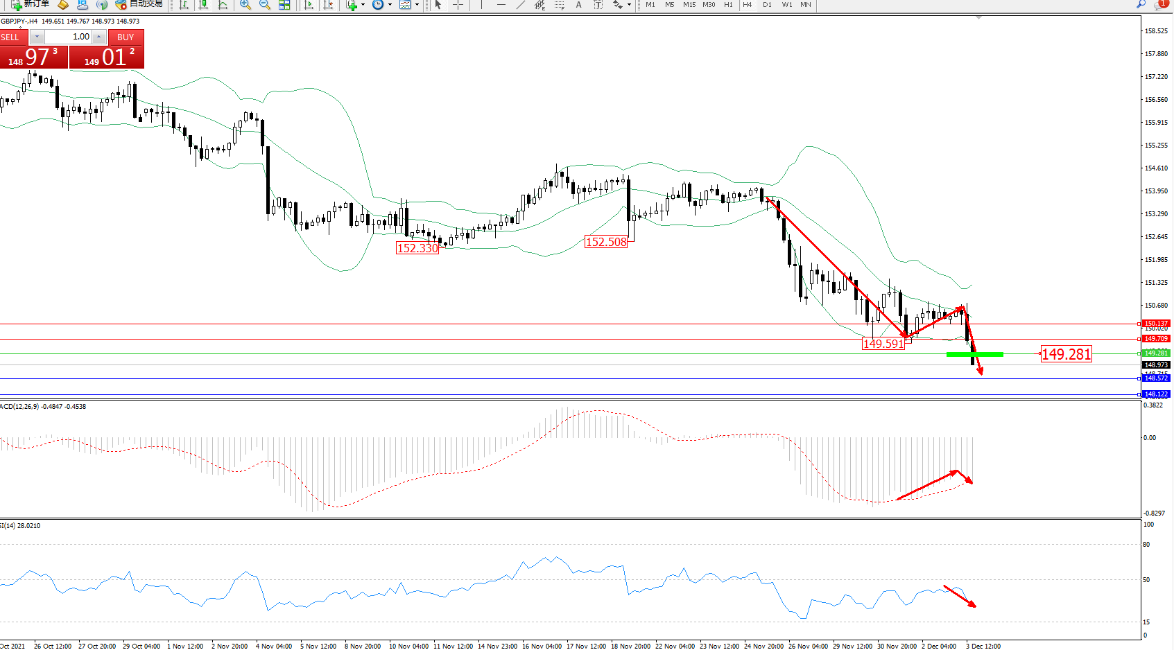 英镑兑日圆维持148.973附近震荡,英国11月服务业采购经理人指数(PMI)从10月份的59.1降至58.5,略低于初值58.6。英国正遭遇至少23年以来最强劲的通胀压力,压制了11月英国服务业公司从新冠疫情中的复苏力道,并削弱了对未来一年的乐观情绪。即使在上个月大多数接受调查的公司知道Omicron变种的消息之前,人们的乐观情绪就已经降到了一年来的最低点。