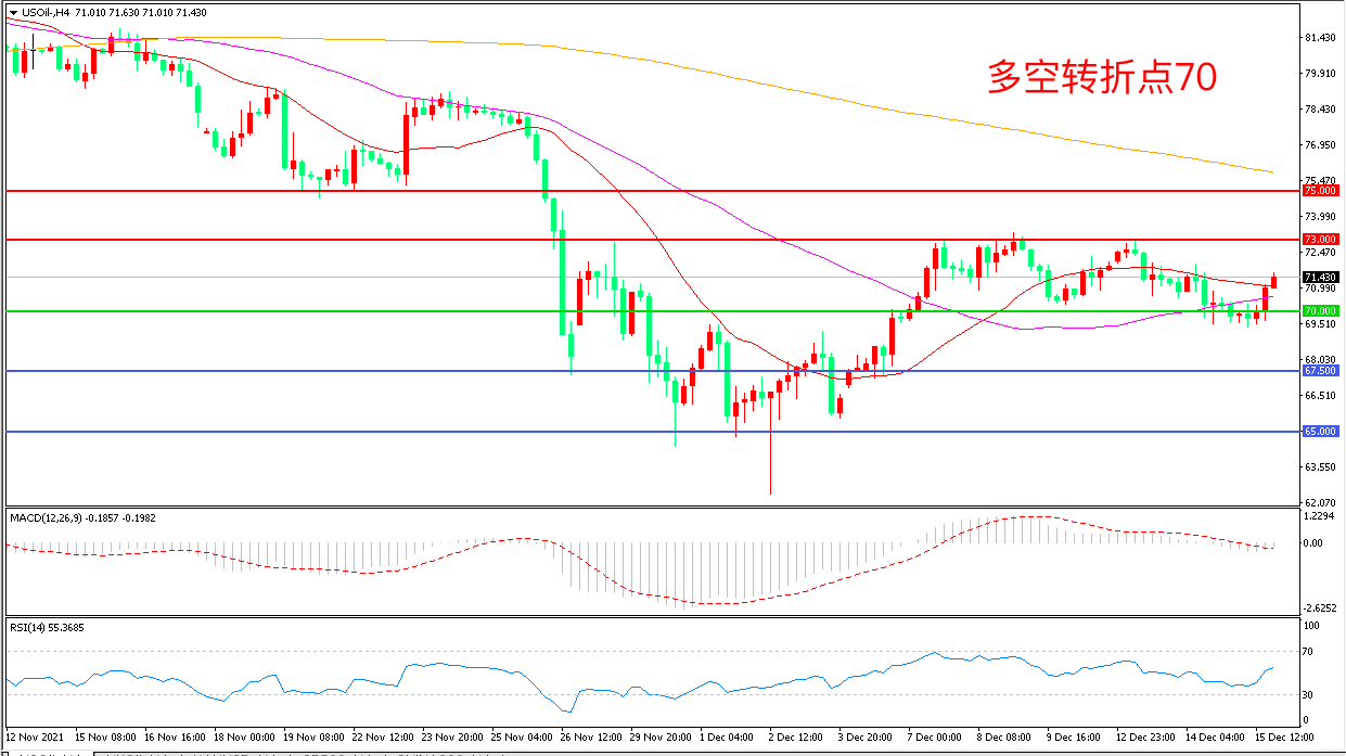 交易策略:在70.00之上看涨,目标73.00        75.00
