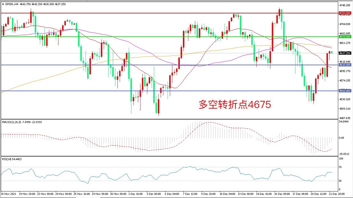 周二(12月21日),美国食品和药物管理局(FDA)计划授权默沙东和辉瑞新冠口服特效药物的使用,担忧情绪有所缓解,科技股上涨推动标普500反弹,收报4641.75点。需要注意的是,尽管美股昨晚有所反弹,但市场对疫情的担忧仍然挥之不去,投资者也将持续关注美国新一轮1.75万亿美元财政刺激能否于明年初落地生效,投资者需谨慎追多。