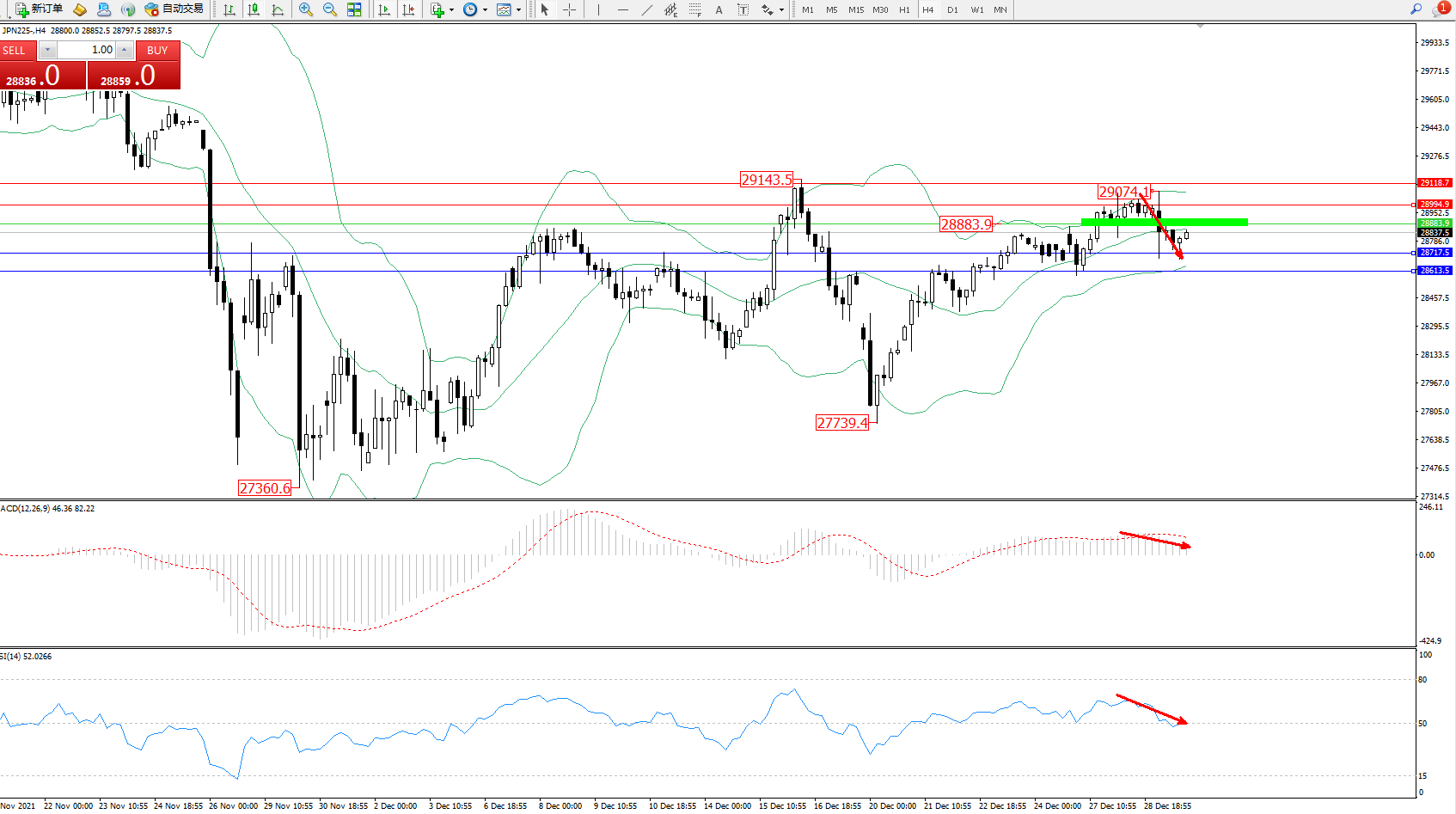 日经225指数12月29日(周三)收盘下跌206.66点,跌幅0.71%,报28862.50点。日本G10外汇策略主管Osamu Takashima表示,全球市场乐观认为奥密克戎毒株的影响将受到控制。美国股市无视美联储加快收紧政策的预期而上涨,意味着目前投资者的风险偏好非常强烈。