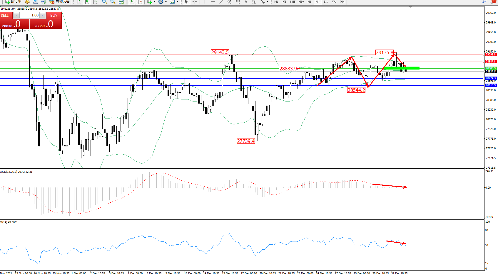 交易策略:28883下方看跌,目标28724、28613