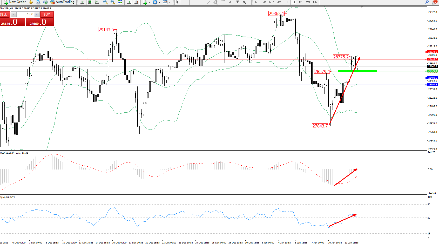 日经指数JPN225——4小时K线图显示: