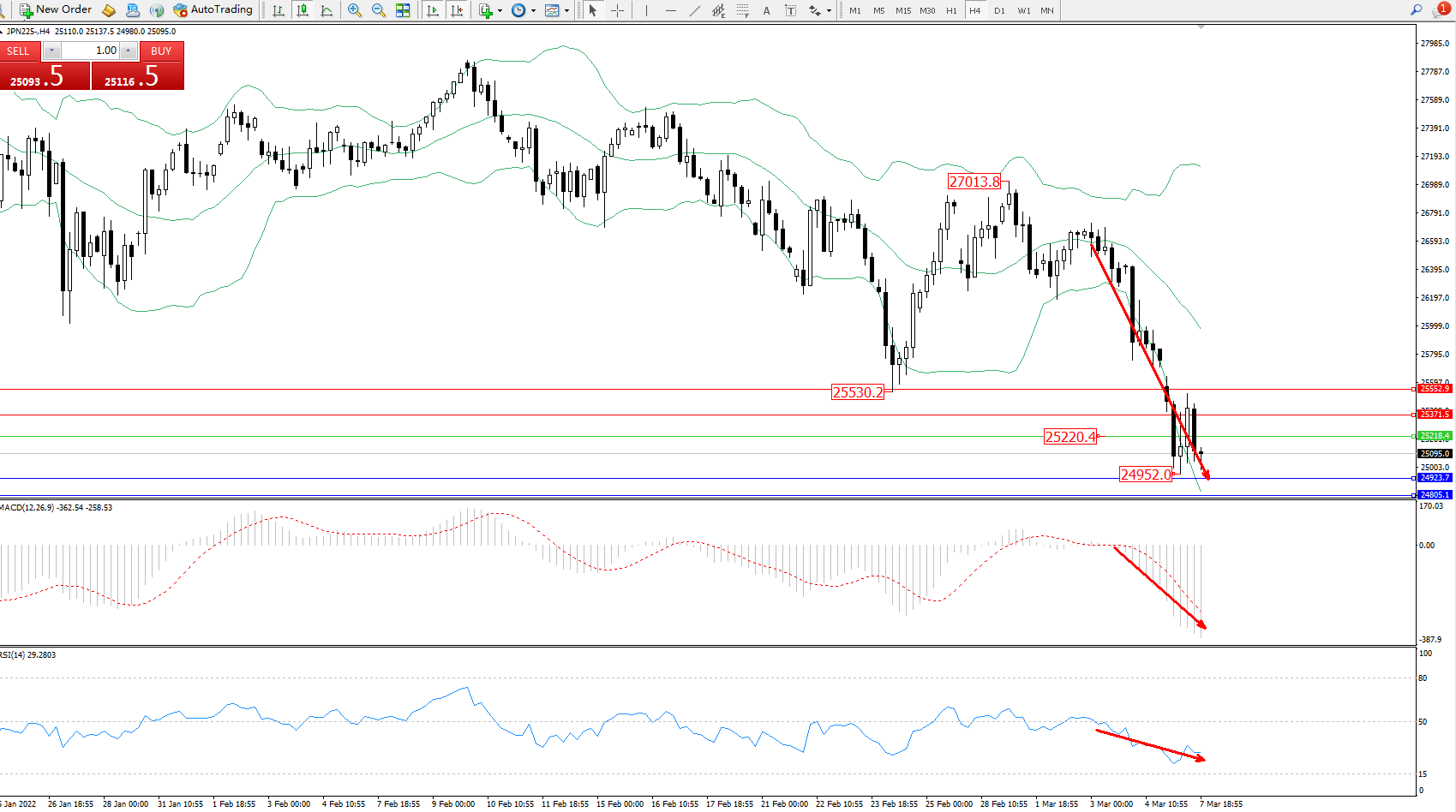 日经指数JPN225——4小时K线图显示:
