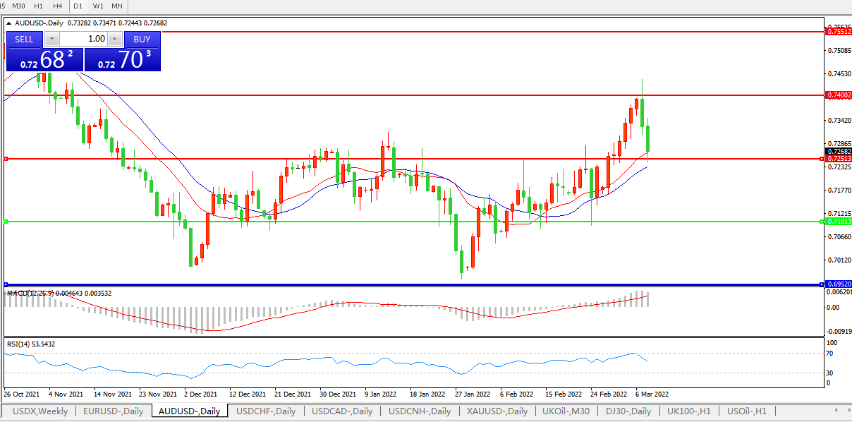 交易策略:0.7100上方看涨,目标0.7250、0.7400